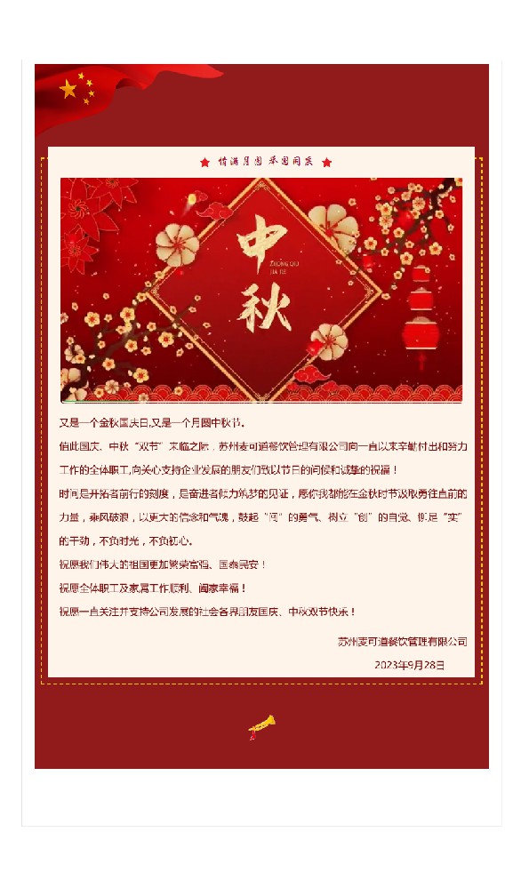 尊敬的苏州麦可道餐饮管理有限公司:您好!感谢您稳价保供,让利客户。面对原材料供货市场价格的上涨、人工成本逐年攀高,餐饮监管···